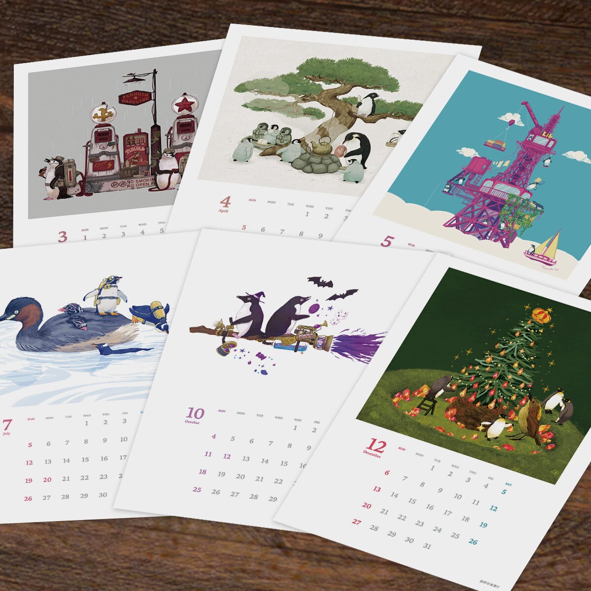 ◆ こちらの商品を含む場合、発送は2025/12/24(水)以降となります ◆ ペンギンたちが暮らす ちょっと不思議な世界を描いたカレンダーです。 2026年1月~12月版。 1枚1枚ばらばらになっているので、フォトフレームに入れて壁に掛けたり ミニイーゼルで立てて置いたり、お好きに飾って頂けます。 ※イーゼルは付属いたしません サイズ:A5(約148x210mm)