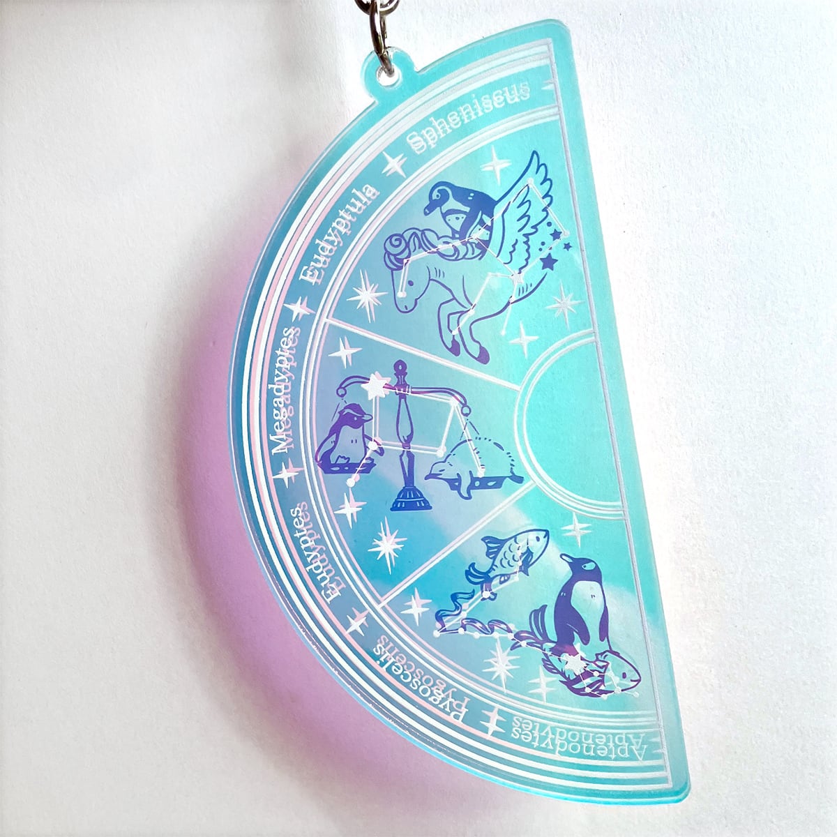 ペンギン×星座をモチーフにしたアクリルキーホルダー。
