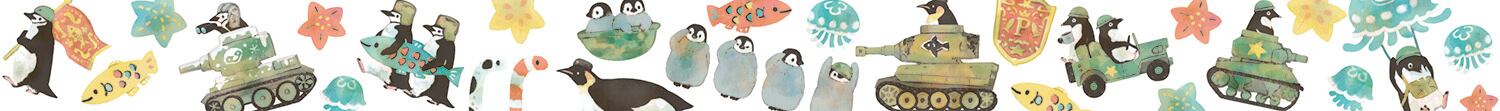 たたかうペンギンたちのマスキングテープです。 手帳やメッセージカードに貼るだけで ちょっぴり華やかになります。 ※和紙素材のため 下の素材が少し透けて見えます テープ 幅15mm×10m