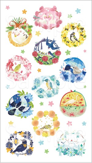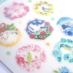 12種類の野鳥と植物がデザインされた、紙専用の転写シール